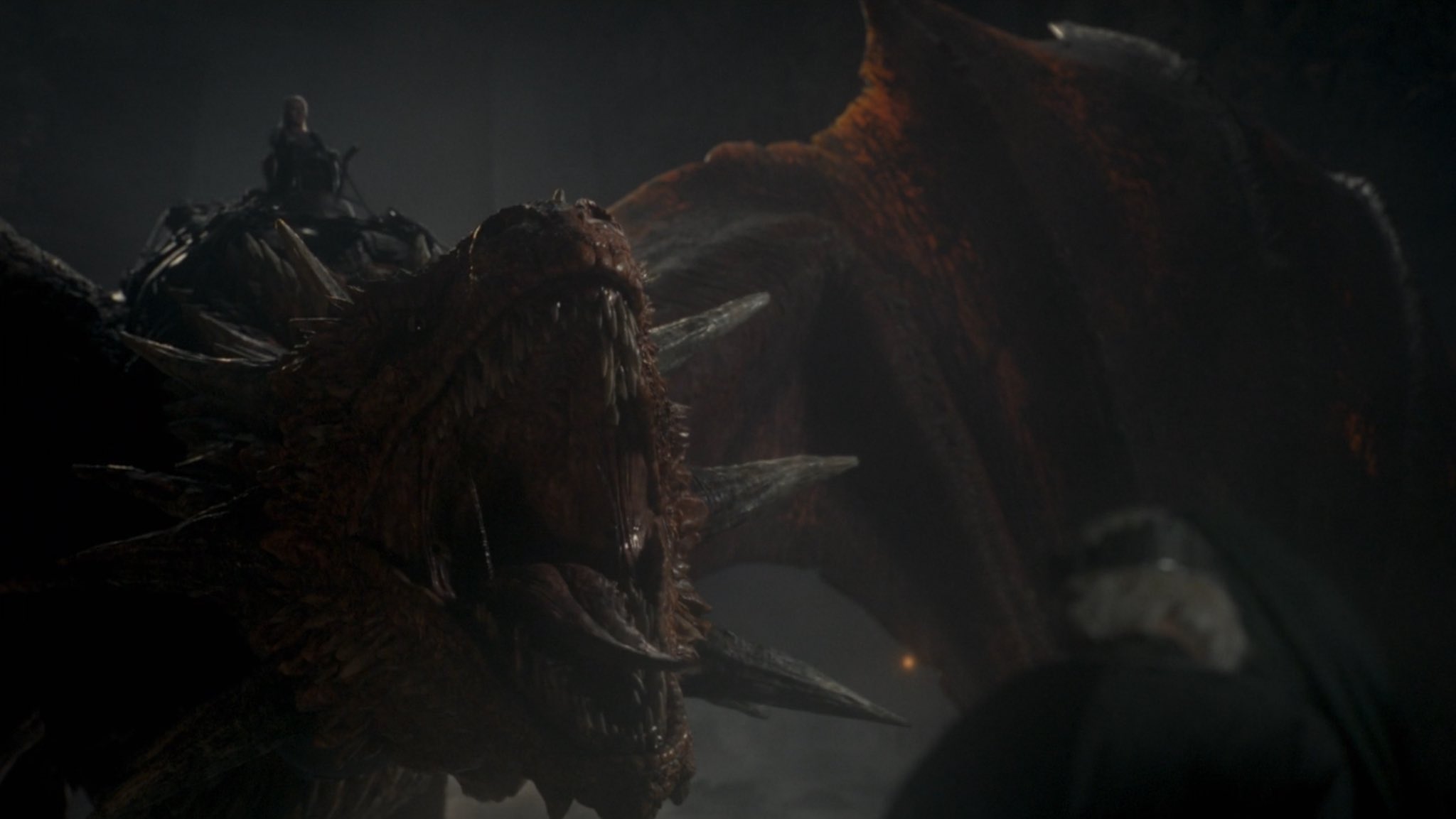Otro de los dragones que más ha aparecido en la serie. Apodado el Anfíptero de Sangre, el impresionante ejemplar rojo es cabalgado por Daemon Targaryen durante toda su vida. Está entrenado para la batalla y será de gran utilidad para los designios de su jinete durante la Danza.