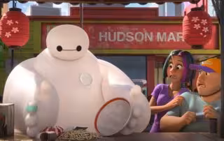 El cuidador personal robot, originalmente un personaje de los cómics de Marvel, se dedicará así en ¡Baymax! a ayudar a los habitantes de la ciudad ante problemas cotidianos: una camarera que se tuerce el tobillo, una señora que sufre problemas de espalda al agacharse a recoger una carta, un gato perdido, una furgoneta de food truck con exceso de velocidad y a la que Baymax salva de estrellarse contra un muro...